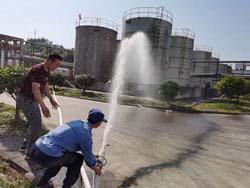 演練的目的:學習噴泡沫作業流程,檢驗設備狀況。