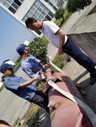 2、 暴露出的問題:水帶有破損漏水、接口處脫落。